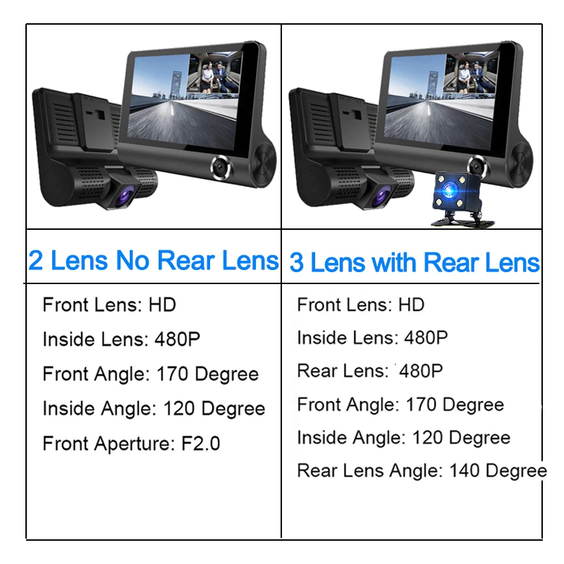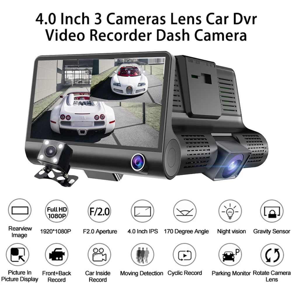 Dash cam 3 Cameras Lens 4.0 Inch car dvr Dash Camera 3 Lens With Rear View Video Recorder Dashcam F